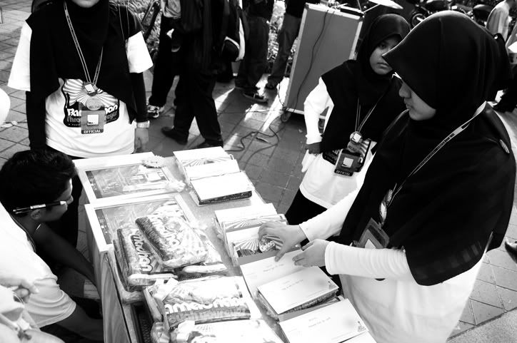 Start of event where everybody is frantically doing almost everything at one go - nasib baik. everything okay. =)